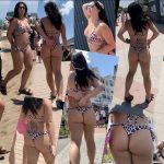 Nice tight ass on tall blonde teen in blue leggings crop top