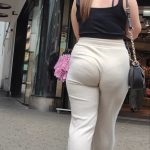 Teen and friends watch a street entertainer. Crotch and ass views.