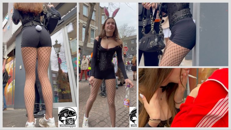 Teen in Bunny Costume, Shorts and Fishnet Tights