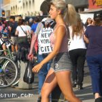 Sexy Blonde Skater in Short Shorts and Pink Top