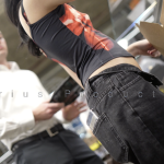 Hot braless teen with perky nips and exposed sexy mid riff (bonus miniskirt brunette)