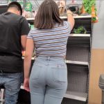Thick candid Latina milf with a big round bubble and vpl in leggings
