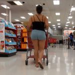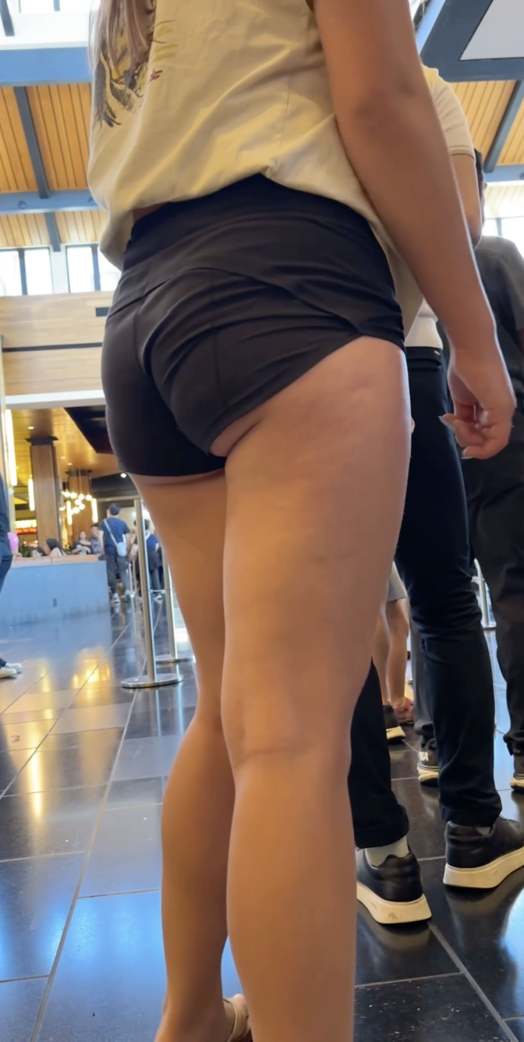Short shorts latina in green flexing her ass
