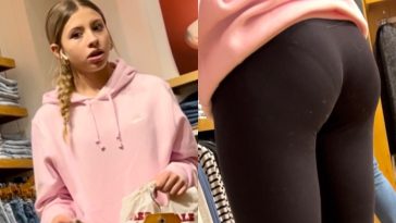 Tight Jort teen duo in line at mall