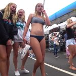 Candid blonde teen in a blue bikini has a nice booty and some pokies
