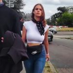 Hot candid redhead pride babe topless on the streets with perfect tits