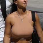 Candid brunette babe with big tits and showing some pokies