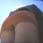 Quick Shot Up Her Very Short Tight Orange Skirt
