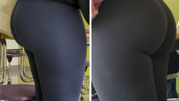 Well formed attention seeker teen in green leggings